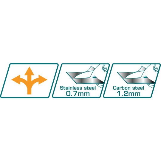 max. stříhací kapacita 1,2mm pro uhlíkovou ocel a 0,7mm pro nerezovou ocel, délka řezací plochy 75mm