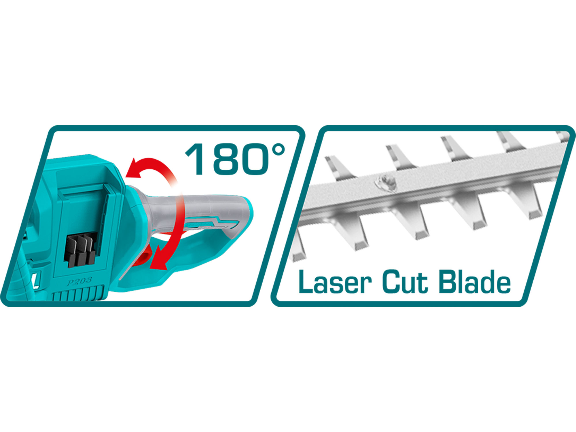 Tyto akumulátorové nůžky jsou určeny ke stříhání živého plotu, keřů, křovin a nově vzrostlých větví v domácích zahradách. Jedná se o novinku společnosti Total. Nůžky jsou napájeny dvěma bateriemi 2000mAh, čímž docílí vyššího výkonu a delší pracovní doby nůžek. Nůžky v sobě mají integrovány 3 pojistky proti spuštění, jsou vybaveny nejmodernějším bezuhlíkovým motorem a pogumovanou rukojetí, která se osvědčila jako protiskluzová. Tyto nůžky jsou součástí populární řady P20S, tedy řady 180 výrobků na jednu baterii. Pokud tedy již vlastníte nějaký bateriový výrobek z řady Total 20V, nemusíte dokupovat k tomuto výrobku baterii a nabíječku. Můžete ji použít z již zakoupeného výrobku. Nepřítomnost napájecího kabelu poskytuje svobodu a komfort při práci a manipulaci s nářadím. Nářadí lze tak s výhodou použít pro práci v místech, kde není možné použít elektrické nářadí s napájecím kabelem z důvodu nedostupnosti distribuční elektrické sítě.