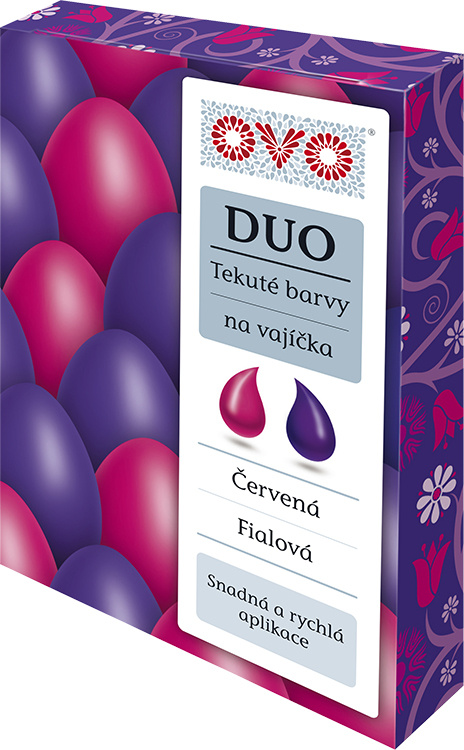 Tekuté barvy na velikonoční vajíčka v DUO sadách červená/fialová - nejrychlejší a praktická aplikace.
