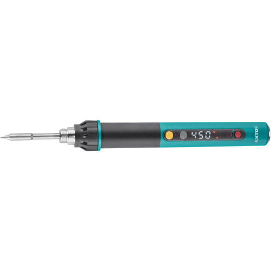 Profesionální mikroprocesorová hrotová pájka s displejem je určena k měkkému pájení, které vyžaduje přesnost a kontrolu teploty hrotu, zejména v elektronice a v bižuterii. S použitím vhodného pájecího hrotu lze pájku použít také k drobnému řezání či spojování plastů a také k vypalování symbolů do dřeva. V pájce se používají přímo žhavené hroty typu T9. Je to nejmodernější typ hrotů, kde hrot, topidlo a termistor jsou zataveny v jednom celku. Protože je mezi těmito částmi minimální tepelná ztráta a vzdálenost, jsou ty hroty efektivnější a lze s nimi dobře pájet již od 330°C. U předchozích typů hrotů je tato hranice kolem 350°C. Teplotní čidlo ve spojení s mikroprocesorem zajišťuje zpětnovazební kontrolu a pájka reaguje velmi rychle na změnu teploty hrotu. Použitý LCD displej má perfektní viditelnost pod všemi úhly a při jakýchkoliv světelných podmínkách. Zobrazuje se na něm jak cílová teplota, tak okamžitá teplota hrotu a indikátor nahřívání. Jednotky teploty si můžete zvolit mezi ˚C a ˚F. Pomocí tlačítek nastavíte teplotu v rozsahu 80–450°C. Pájka je vybavena několika funkcemi: nastavení startovací teploty, kalibrací, spánkem a zámkem. Pomocí funkce nastavení startovací teploty si nastavíte teplotu která se objeví po zapnutí pájky. Kalibrací teploty můžete kompenzovat teplotní ztráty, které vzniknou při použití větších hrotů v rozsahu ±50˚C. Funkce spánku dovoluje pájce "usnout" po uplynutí nastavené doby na 80˚C. Po 30min ve "spánku" se pájka vypne. Zámkem nastavíte heslo, které je nutno zadat, aby jste mohli měnit nastavení pájky. Pájka má také ESD ochranu proti výboji statické elektřiny. Plastový přechod mezi kovovou a plastovou částí je vyroben ze speciálního vysoce tepelně odolného plastu a ručka je potažená silikonem pro příjemné držení při práci. Balení neobsahuje USB zdroj, ale můžete použít jakýkoliv zdroj, který má minimální technickou specifikaci uvedenou v parametrech. Pájku sice lze nouzově použít s 5V nebo 9V, ale práce je velmi pomalá. Doporučujeme zdroje, které dávají 12V/1,7A a více. Protože pájka používá standardní USB-C konektor, lze použít také QC/PD powerbanky nebo USB nabíječky do auta, což dovoluje pájení na jakémkoliv místě. Součástí balení je menší stojánek s houbičkou pro odložení pájky a 1,5m kabel USB-A — USB-C s max. 12V napětím.