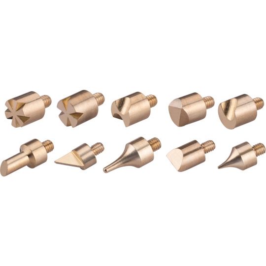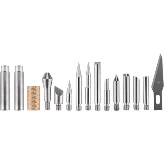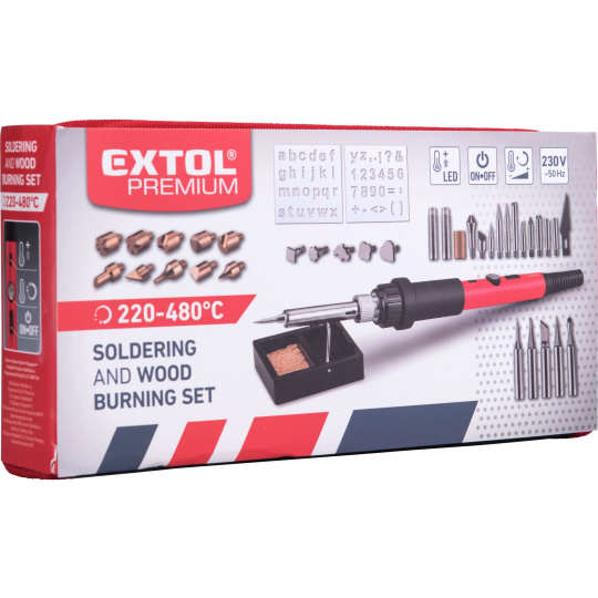 Hrotová pájka je určena k měkkému pájení, které vyžaduje přesnost a kontrolu teploty hrotu, zejména v elektronice a v bižuterii. S použitím vhodného hrotu lze pájku použít také k vypalování symbolů do dřeva, drobnému řezání či spojování plastů. S pájkou se používají standardní hroty typu 900M. Hrot pájky je nahříván keramickým tělesem s vnitřním topícím prvkem. Pomocí regulačního kolečka nastavíte teplotu v rozsahu 220–480°C. Plastový přechod mezi kovovou a plastovou částí je vyroben ze speciálního vysoce tepelně odolného plastu a ručka je potažená silikonem pro příjemné držení při práci. Součástí balení je 6 hrotů pro pájení, 30 hrotů pro vypalování do dřeva v plechové krabičce, 2 šablony pro kreslení písmen a čísel a jednoduchý stojánek pro odložení pájky. Vypalovací hroty lze použít s jakoukoliv pájkou pro hroty 900M. Pájka je se vším příslušenstvím uložena v měkkém pouzdře.