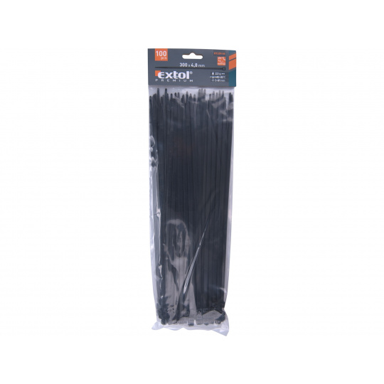 pásky stahovací na kabely černé, 300x4,8mm, 100ks, nylon PA66