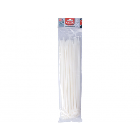 pásky stahovací na kabely EXTRA, bílé, 370x7,6mm, 50ks, nylon PA66