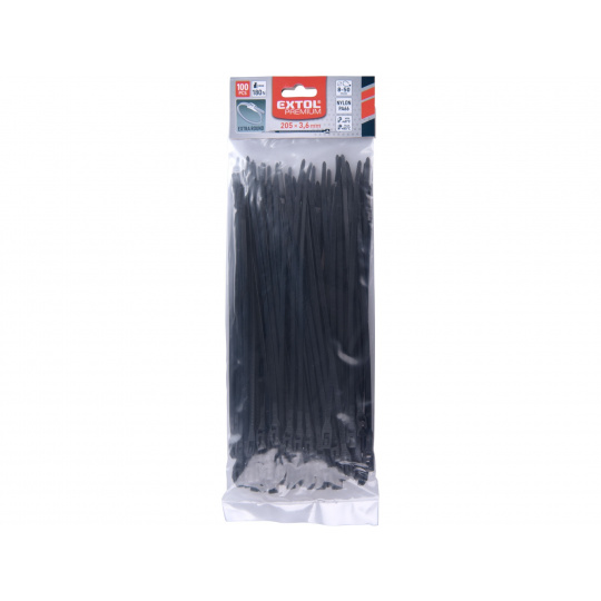 pásky stahovací na kabely EXTRA, černé, 200x3,6mm, 100ks, nylon PA66