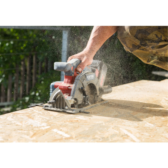 Aku kotoučová pila je navržena tak, aby uživatelům poskytla výkonné a snadné řezání při různých instalatérských, elektrických, rámovacích, dokončovacích a tesařských pracích. Pila je poháněná silným motorem s otáčkami 3650/min, který umožňuje uživatelům rychle a snadno řezat tvrdým materiálem. Horní a spodní kovový ochranný kryt poskytují vynikající ochranu kotouče při pádu. Gumová měkká rukojeť je ergonomicky navržena tak, aby uživatelům poskytovala vynikající pohodlí a vyvážení pro snadno ovladatelné řezy. Pro běžnou práci dostačují jeden nebo dva 2000mAh akumulátory, které můžete rychle nabít v rychlonabíječce, pro náročnější nebo delší práci doporučujeme větší akumulátory s kapacitou 4000–8000mAh. Akumulátor lze použít ve všech typech nářadí řady EXTOL SHARE20V. Díky použité Li-ion technologii je ho možné kdykoliv dobíjet, aniž by se tím snižovala jeho kapacita. Li-ion akumulátor ztrácí energii vlivem samovybíjení velmi pomalu a vydrží dlouho nabitý a připravený k použití.