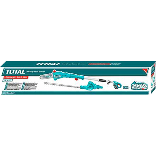 Tento set zahradního AKU nářadí se skládá z prořezávací pily na teleskopickém držáku, AKU nůžky na živé ploty, 1ks baterie a 1ks nabíječky. Akumulátorová prořezávací pila je určena k řezání či zkracování větví stromů a keřů do průměru 20 cm při rychlosti řetězu 4,8m/s. Nalézá tak uplatnění k prořezávání korun stromů v domácích zahradách, zejména stromů ovocných. Řetěz pily je samomazací, nemusíte tedy po pár minutách řezání řetěz ručně mazat. Kapacita olejové nádobky je 70ml.Aku nůžky na živé ploty jsou dlouhé 460mm s maximálním průměrem prořezu 18mm. Rychlost kmitu je 2800 kmitů za minutu.