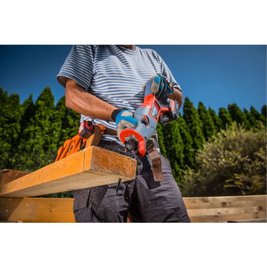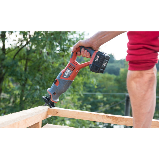 Aku pila ocaska je určena k řezání dřeva, umělé hmoty, kovů a jiných podobných materiálů při práci v dílně, garáži nebo na zahradě. Pružný pilový list umožňuje provádět nejen přímé a obloukové řezy, ale také řezy ve špatně přístupných místech (v rozích, podél zdi), prořezávání stromů. Hlavní výhodou této pily je akumulátorový pohon, který dovoluje si tuto pilu vzít s sebou tam kde s ní potřebujete pracovat, bez ohledu na to, jestli tam je rozvod elektrické energie. Pila má bezpečnostní pojistku proti náhodnému spuštění a je vybavena nastavitelným předkmitem, který si můžete upravit v závislosti na řezaném materiálu. Pro běžnou práci dostačují jeden nebo dva 2000mAh akumulátory, které můžete rychle nabít v rychlonabíječce, pro náročnější nebo delší práci doporučujeme větší akumulátory s kapacitou 4000–8000mAh. Akumulátor lze použít ve všech typech nářadí řady EXTOL SHARE20V. Díky použité Li-ion technologii je ho možné kdykoliv dobíjet, aniž by se tím snižovala jeho kapacita. Li-ion akumulátor ztrácí energii vlivem samovybíjení velmi pomalu a vydrží dlouho nabitý a připravený k použití.