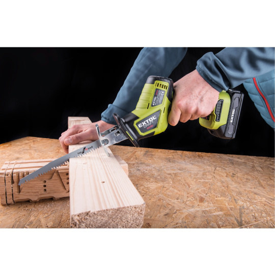 Malá lehká jednoruční aku pila ocaska je určena k řezání dřeva, umělé hmoty, kovů a jiných podobných materiálů při práci na zahradě, v dílně nebo garáži. Pila je poháněná nejmodernějším „brushless" motorem. Tento nový typ motoru má vyšší životnost, je výkonnější a má menší spotřebu el. energie než klasické motory s uhlíkovými kartáči. Pružný pilový list umožňuje provádět nejen přímé a obloukové řezy, ale také řezy ve špatně přístupných místech (v rozích, podél zdi), prořezávání stromů. Hlavní výhodou této pily je akumulátorový pohon, který dovoluje si tuto pilu vzít s sebou tam kde s ní potřebujete pracovat, bez ohledu na to, jestli tam je rozvod elektrické energie. Je možné nastavit nižší nebo vyšší kmitání a pomocí toho upravit otáčky podle použitého typu materiálu. Pilový plátek lze velmi jednoduše rychle vyměnit bez použití nástroje. Pokud potřebujete řezat směrem nahoru, můžete si ho jednoduše otočit. Pila má zámek proti náhodnému spuštění. Integrovaná LED svítilna osvětluje pracovní prostor a pro zlepšení orientace v tmavých prostorech má zpožděné vypnutí. Rukojeť je pokryta gumou, která snižuje přenos vibrací do ruky a spolu s nízkou hmotností, ergonomickým tvarem a vyvážením činí práci příjemnější a méně únavnou. Akumulátor lze díky použité technologii kdykoliv dobíjet, aniž by se tím snižovala jeho kapacita, velmi pomalu ztrácí energii vlivem samovybíjení a proto vydrží dlouho nabitý a připravený k použití.