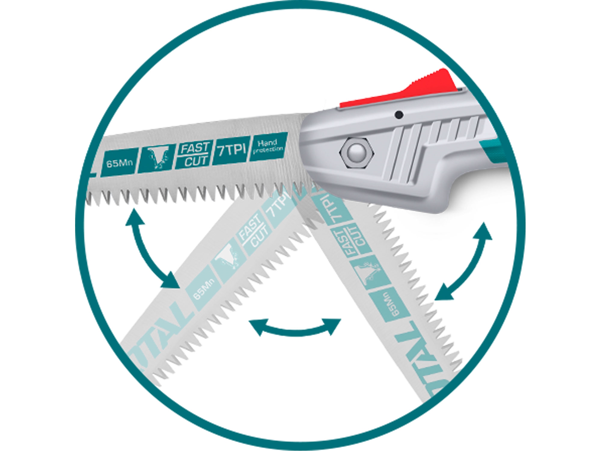180mm dlouhá skládací pila. Materiál 65Mn. Standardní zuby 7TPI, trojité zuby (přesně broušené 3hranné zuby), fast cut....