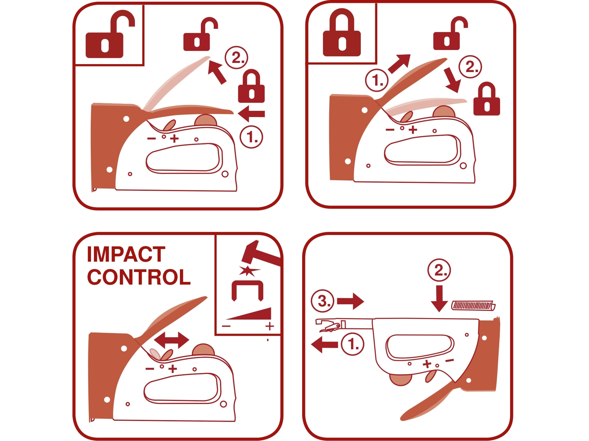 možnost nastavení síly úderu, vhodné pro spony: výška 6-16mm, rozteč 11,3x tl.0,7mm, hřebíky s hlavičkou do max.délky16mm