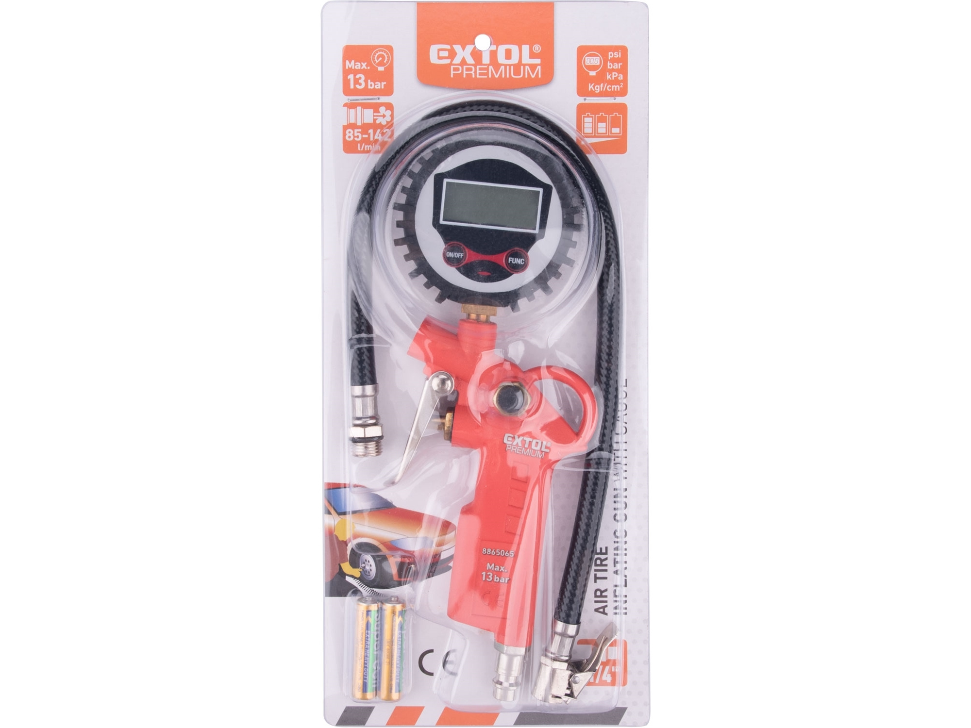 Plnič pneumatik s digitálním manometrem je určen k snadnému plnění stlačeným vzduchem, např. pneumatik automobilů, kol atd.
