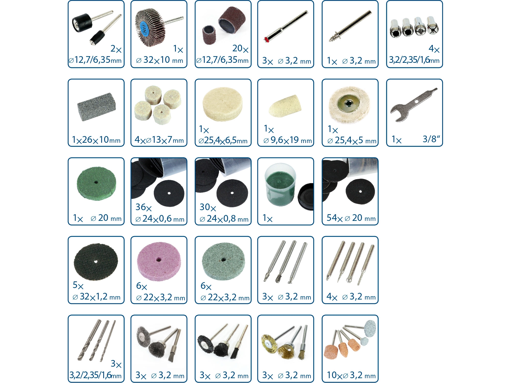 POŠK. OBAL nástavce na přímou brusku, sada 208ks, EXTOL PREMIUM