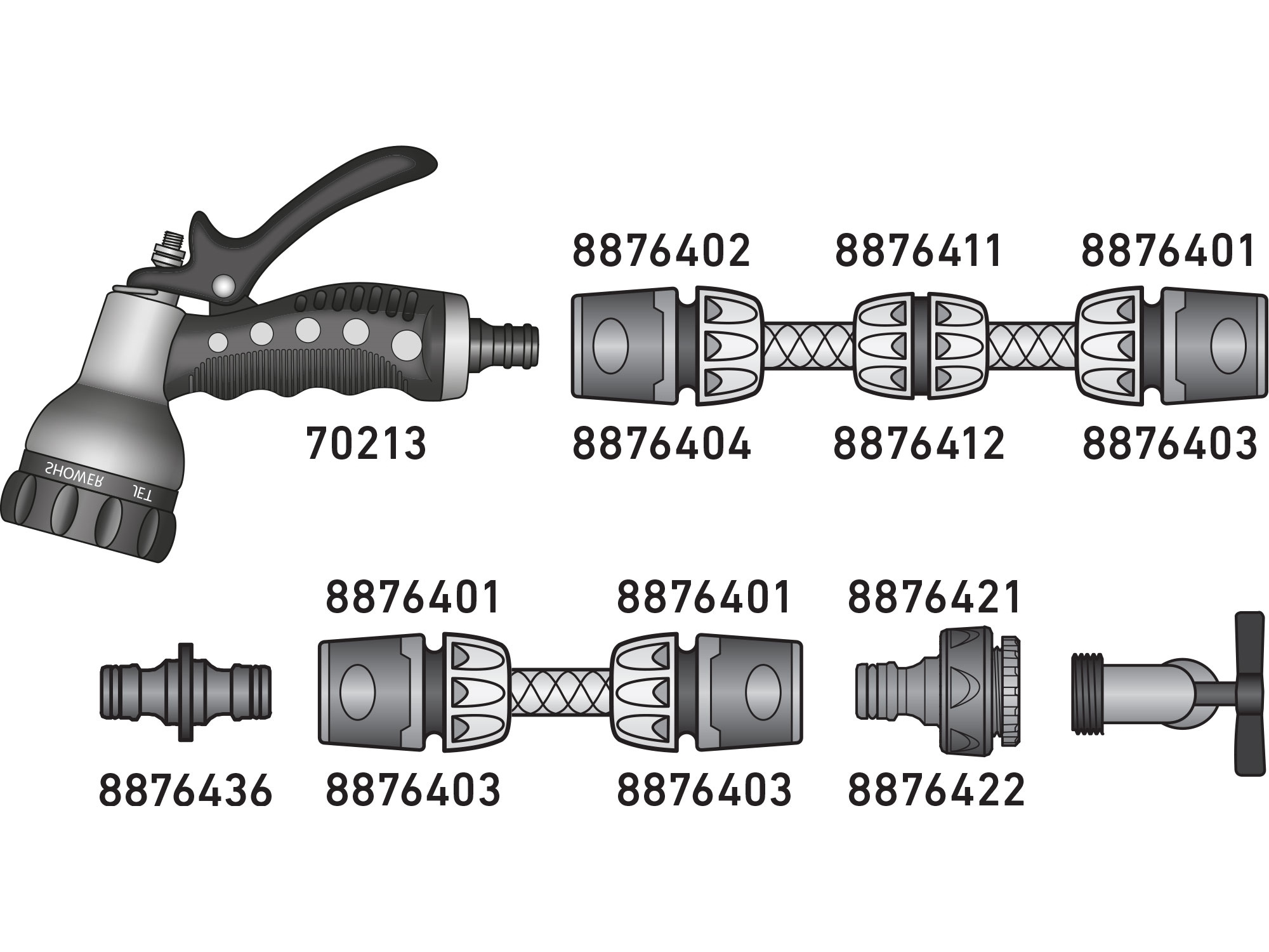 postřikovač zahradní kovový, 7funkční, MOSAZ
