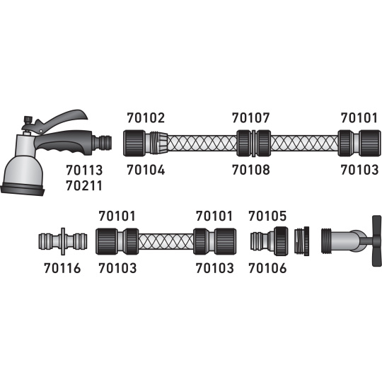 mosaz. tryska s možností nastavení stříkání od jemného mlžení až po plný proud, ergonomická rukojeť s aretací