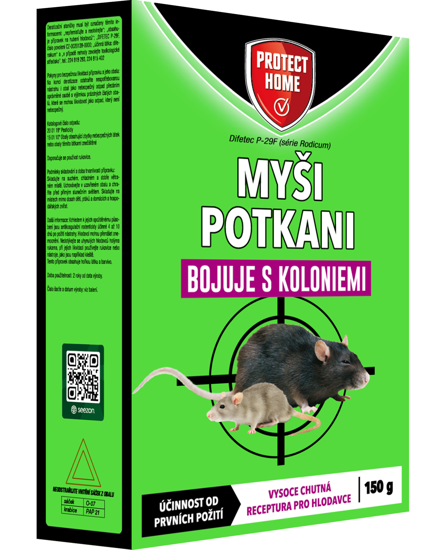 Rodenticid proti myším a potkanům.