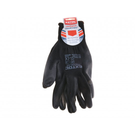 rukavice z polyesteru polomáčené v PU, černé, velikost 8"