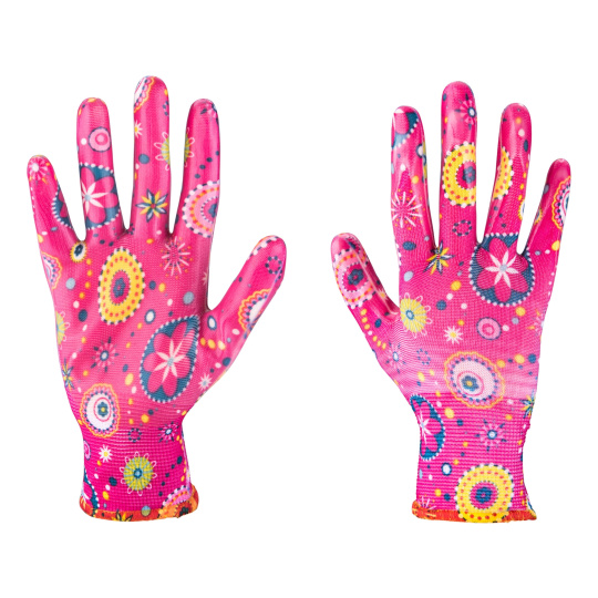 rukavice zahradní polyesterové, polomáčené v nitrilu, velikost 8"