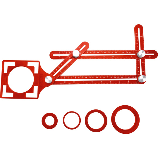 šablona pro přenášení úhlů a pozic kovová s lokátorem, ramena 25x12mm