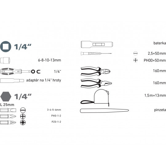 1/4"(L25mm): (-)3-4-5-6mm, PH0-1-2, PZ0-1-2 (CrV)