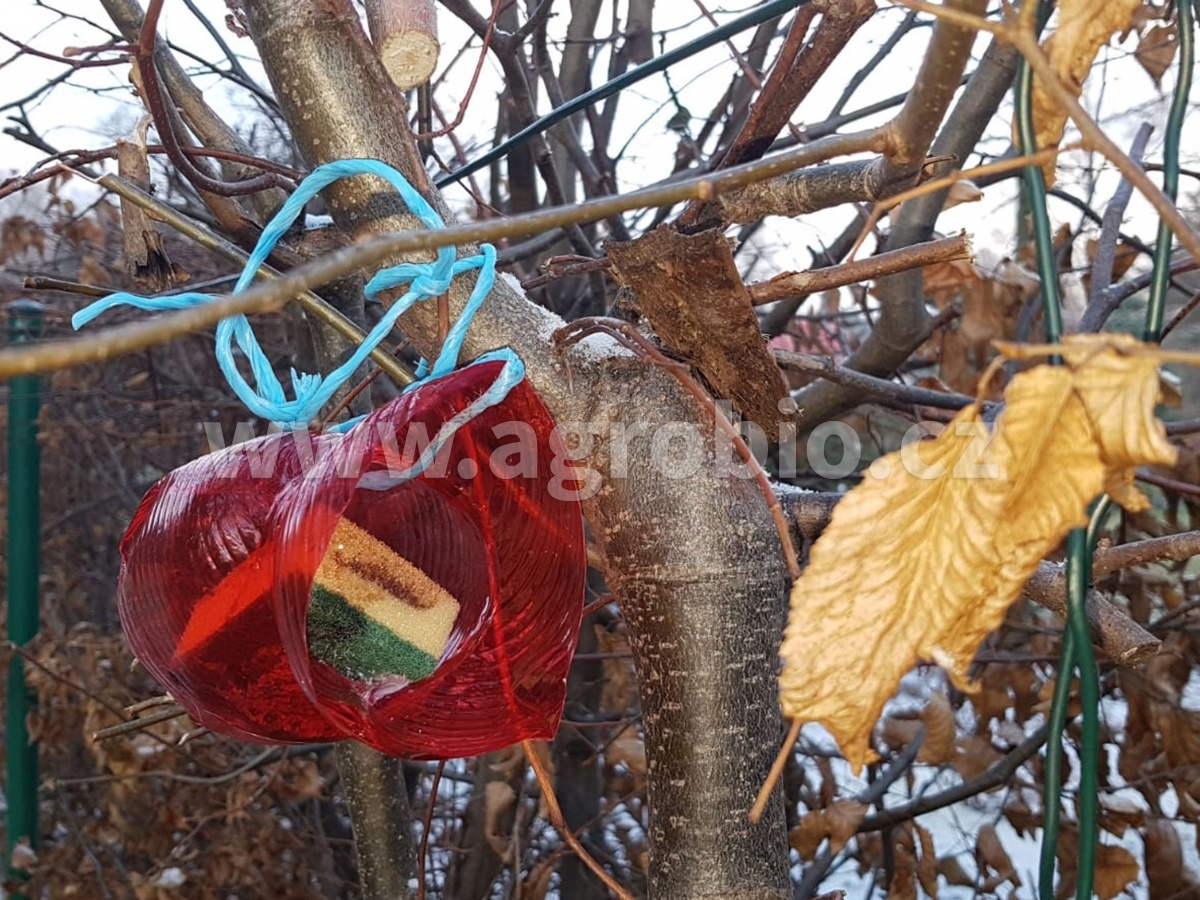 - namočte houbičku (nebo hadřík) do přípravku (spotřeba: cca 20 ml) a upevněte ji ve výšce 50 cm až 1 metru na plotové sloupky, sloupky ve vinohradu nebo dřevěné laťky, které zapíchnete do země