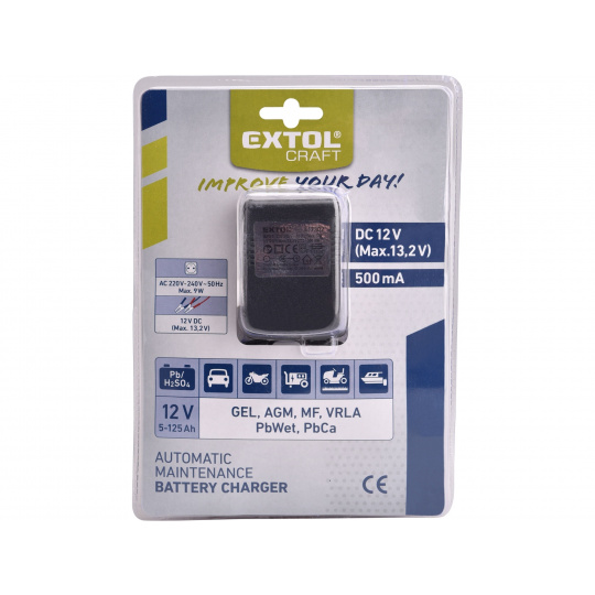 Malá udržovací nabíječka bez ovládacích tlačítek s nabíjecím proudem 0,5A a napětím max. 13,2V je určena k udržování 12V olověných akumulátorů s kapacitou 5-125Ah v málo používaných vozidlech a zařízeních v provozuschopném stavu, např. v motocyklech, skútrech, autech, lodích, zahradních strojích, elektrocentrálách s elektrickým startem, kdy je akumulátor málo nebo není vůbec dobíjen provozem zařízení, např. v nepoužívaných zařízeních na výstavách, v zimním období apod. Pokud je akumulátor delší dobu vybitý, vede to k jeho nevratnému poškození. Nabíječka je určena pro všechny typy olověných 12V akumulátorů.
