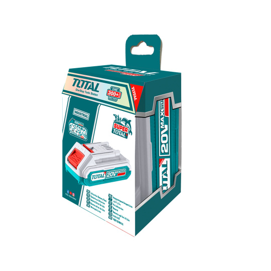 Baterie je určena pro všechny typy nářadí TOTAL 20V. Díky použité Li-ion technologii je možné baterii kdykoliv dobíjet, aniž by se tím snižovala její kapacita. Li-ion akumulátor také ztrácí energii vlivem samovybíjení velmi pomalu a vydrží dlouho nabitá.