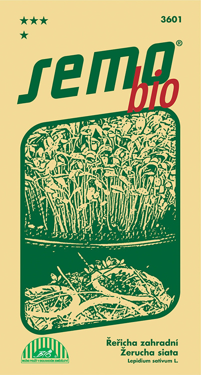 BIO DÁNSKÁ - jemná listová zelenina vhodná hlavně k rychlení v zimním a předjarním období. Sklízíme mladé rostlinky vysoké 4 – 6 cm. Vyséváme nahusto do truhlíků, misek či jiných pěstebních nádob. Sejeme na povrch substrátu a nezasypáváme. Výborným pěstebním substrátem je buničitá vata. Udržujeme přiměřenou vlhkost a teplotu 15 – 18oC. Nehnojíme. Sklízíme 7 – 14 dní od výsevu odřezáváním celých rostlin těsně nad povrchem substrátu. Z 1 m2 pěstební plochy získáme 0,3 – 0,4 kg zelené hmoty.