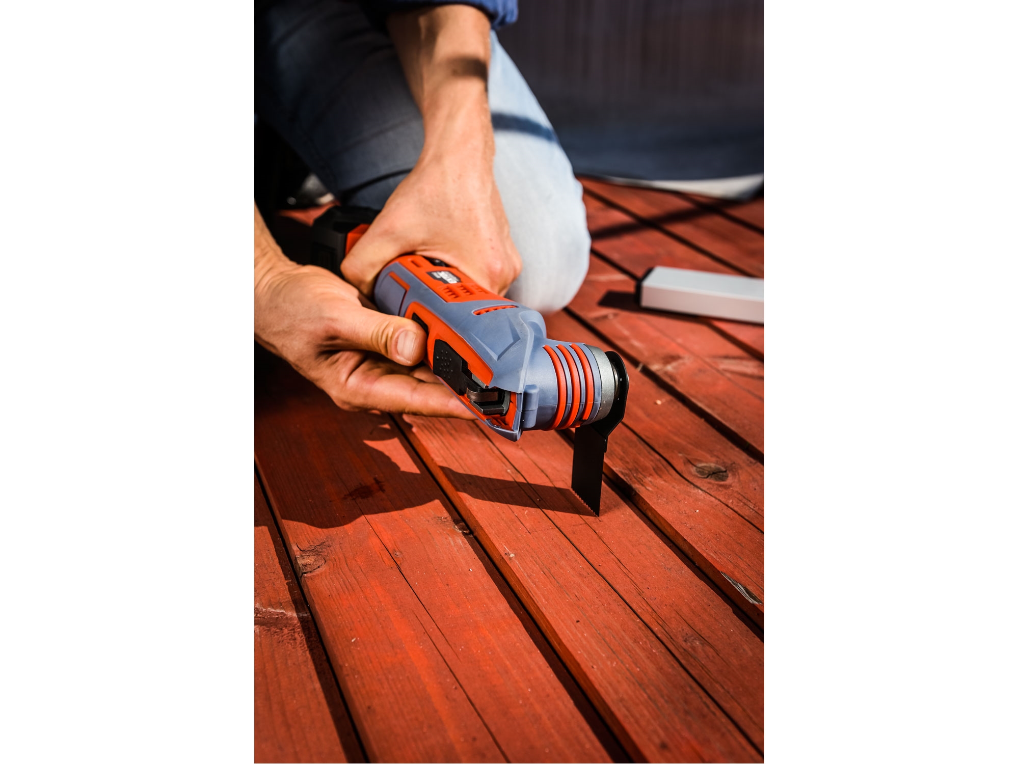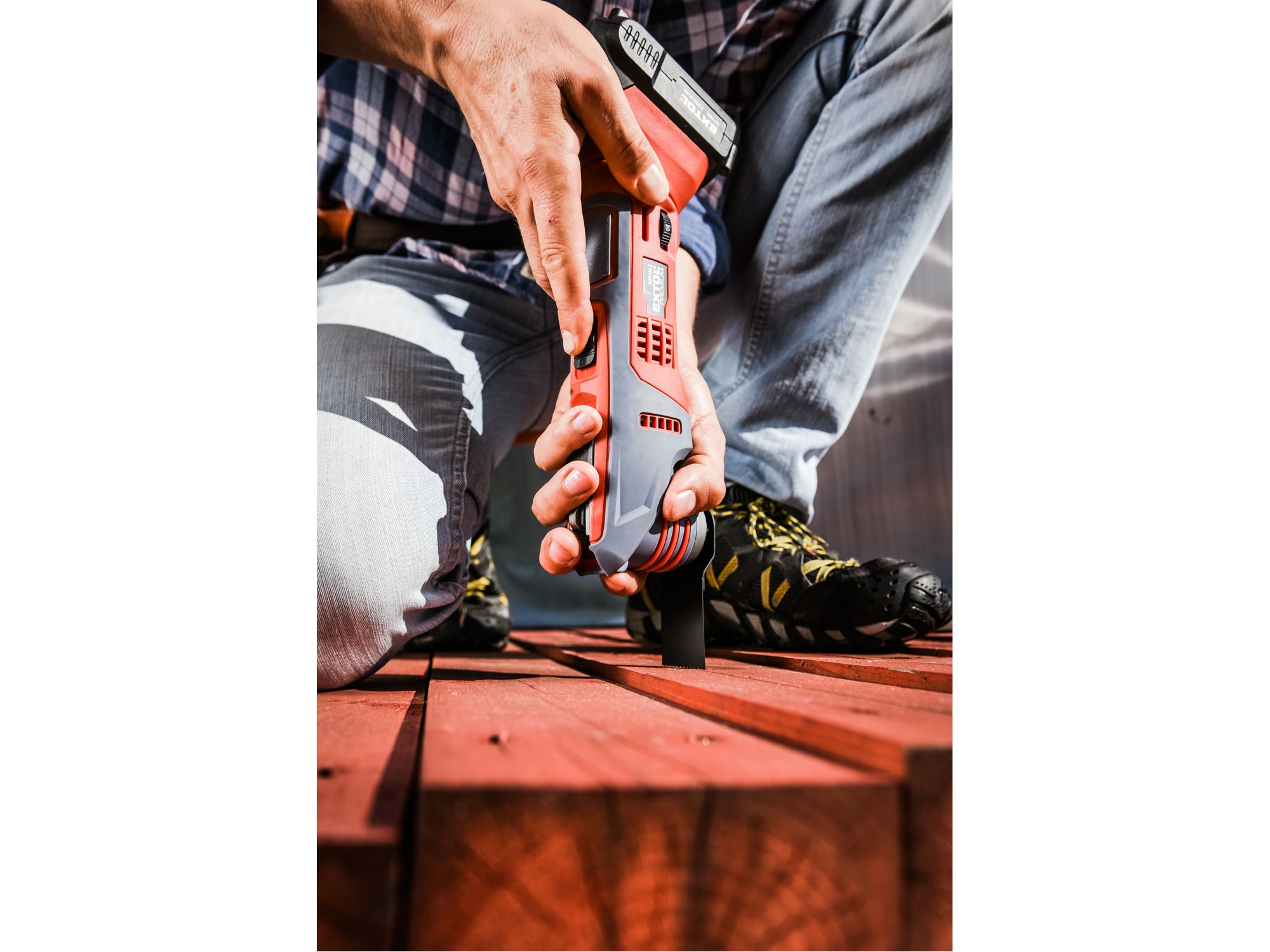 Aku multifunkční bruska je určena k řezání a oddělování dřevěných materiálů, umělé hmoty, sádrokartonu a měkkých kovů (např. mědi, hliníku, nekalených hřebíků, slitin měkkých kovů) dále k rašplování, broušení a seškrabávání menších ploch. Nářadí umožňuje provádět přesné práce na těžko přístupných místech jako např. provádění výřezů v rozích nábytku, obkladaček apod. Její hlavní výhodou je akumulátorový pohon, který dovoluje si vzít brusku s sebou tam kde s ním potřebujete pracovat, bez ohledu na to, jestli tam je rozvod elektrické energie. Pro běžnou práci dostačují jeden nebo dva 2000mAh akumulátory, které můžete rychle nabít v rychlonabíječce, pro náročnější nebo delší práci doporučujeme větší akumulátory s kapacitou 4000–8000mAh. Akumulátor lze použít ve všech typech nářadí řady EXTOL SHARE20V. Díky použité Li-ion technologii je ho možné kdykoliv dobíjet, aniž by se tím snižovala jeho kapacita. Li-ion akumulátor ztrácí energii vlivem samovybíjení velmi pomalu a vydrží dlouho nabitý a připravený k použití.