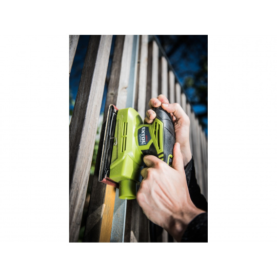 Dvouruční bruska určena pro broušení dřeva a dřevěných materiálů, kovů a zabroušení poškozených míst povrchové úpravy, např. barvy a laku, dále tmelů apod. bez použití vody. Broušení je prováděno mikrojemnými vibracemi brusné základny kmitající o vysoké frekvenci. Bruska je vhodná pro broušení v místech s pravým úhlem, např. v rozích podlah a k finálnímu zbroušení jemných defektů na površích před nanášením povrchové úpravy. Bruska není určena k broušení sádrokartonu a stavebních materiálů.