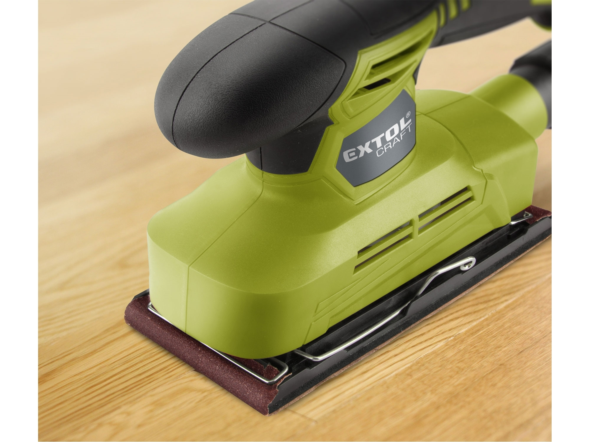 Dvouruční bruska určena pro broušení dřeva a dřevěných materiálů, kovů a zabroušení poškozených míst povrchové úpravy, např. barvy a laku, dále tmelů apod. bez použití vody. Broušení je prováděno mikrojemnými vibracemi brusné základny kmitající o vysoké frekvenci. Bruska je vhodná pro broušení v místech s pravým úhlem, např. v rozích podlah a k finálnímu zbroušení jemných defektů na površích před nanášením povrchové úpravy. Bruska není určena k broušení sádrokartonu a stavebních materiálů.