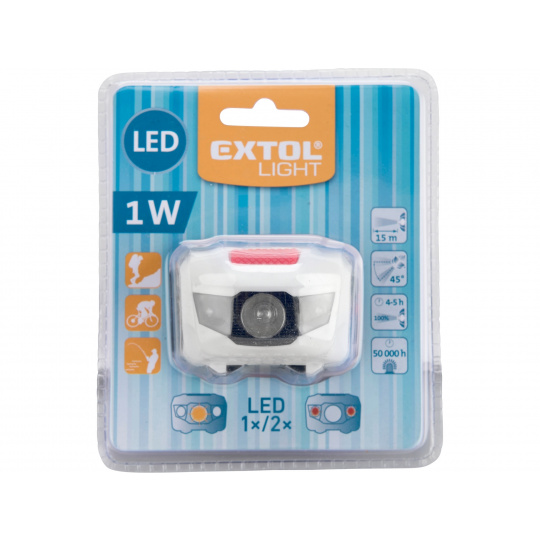 čelovka 40lm, 1W + 2 červené LED, ABS plast
