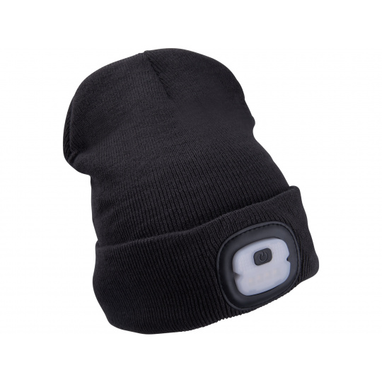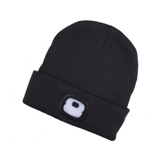 čepice s čelovkou 4x25lm, USB nabíjení, tmavě šedá, ECONOMY, univerzální velikost, 73% acryl a 27% polyester