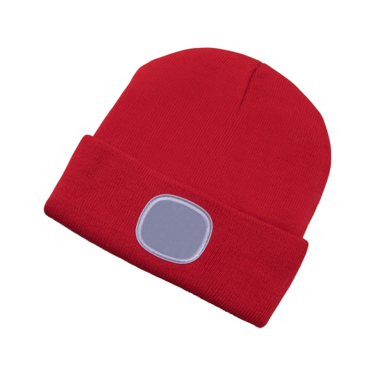 čepice s čelovkou 4x45lm, USB nabíjení, červená, univerzální velikost, 73% acryl a 27% polyester