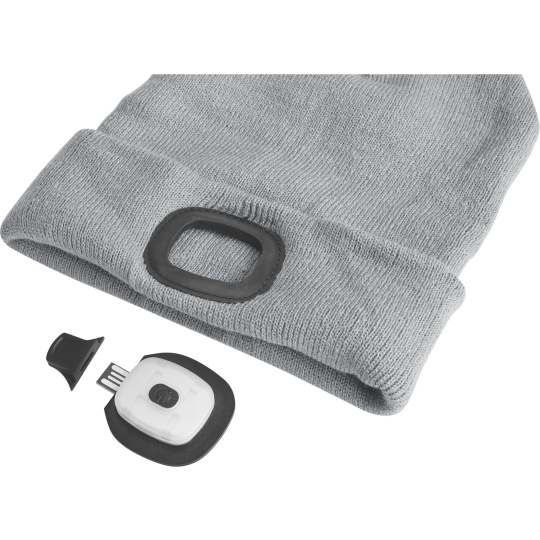 čepice s čelovkou 4x45lm, USB nabíjení, šedá, univerzální velikost, 73% acryl a 27% polyester
