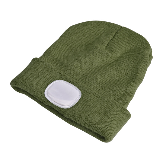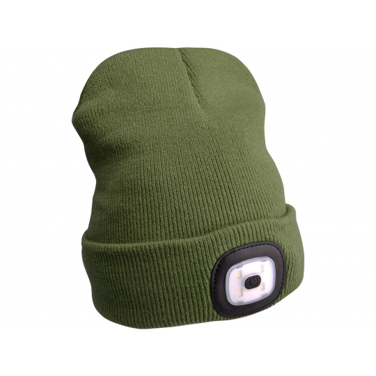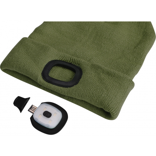 čepice s čelovkou 4x45lm, USB nabíjení, tmavě zelená, univerzální velikost, 73% acryl a 27% polyester