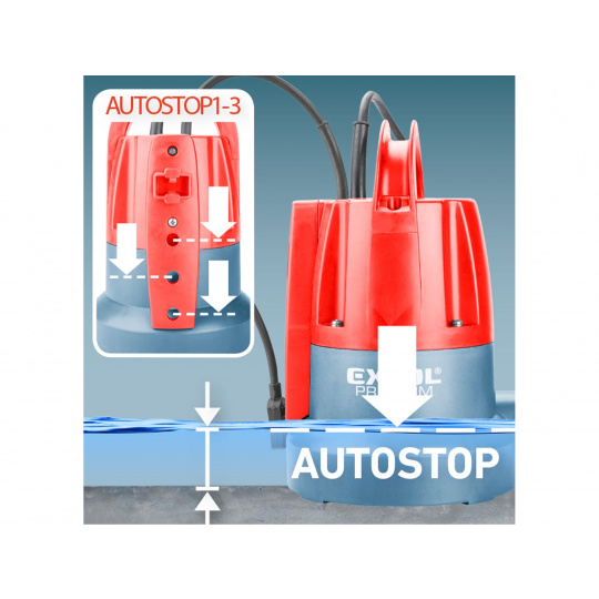 Vynikající model vhodný pro dočerpávání do “sucha” v zahradních bazénech, menších prostorech nebo nádobách. Díky motoru o výkonu 400W je max. průtok čerpadla 8000 l/hod a max. výtlak 7m. Čerpadlem projdou pevné nečistoty o maximální velikosti 1mm. Čerpadlo může pracovat ve třech režimech – čerpání do nastavené výšky, čerpání dokud je voda v čerpadle, manuální režim (nutná přítomnost obsluhy). Namísto běžného plovákového spínače je čerpadlo vybaveno čidlem a toto čidlo lze umístit do požadované výšky nebo volně položit na dno čerpaného prostoru. Jakmile se čidlo dostane nad hladinu vody, bude čerpadlo ještě 3min čerpat a poté se vypne. Pro úplné vyčerpání vody můžete potom čerpadlo přepnout na manuální režim a počkat u něj než vyčerpá zbytek vody. Na hadicovou přípojku lze nasadit hadici o průměrech 1” a 1 1/4”. Pro zvýšení výkonu při čerpání malých objemů je čerpadlo vybaveno zpětnou klapkou. Čerpadlo je určeno k čerpání čisté užitkové vody bez obsahu jakéhokoli mechanického znečištění.