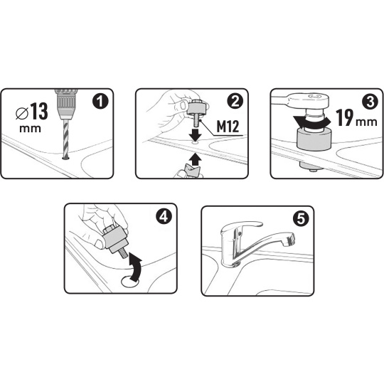 nástroj slouží primárně k vytvoření otvoru v nerezovách dřezech pro montáž dřezové baterie