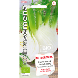 Odrůda: BIO FENYKL - DE FLORENCIA - výborná odrůda do salátů i k tepelné úpravě. Pěstitelsky nenáročná, vyberte pro ni ale záhřevnou a chráněnou polohu. Semena pochází z BIO produkce, byla pěstována na certifikovaných plochách s dodržením veškerých požadavků kladených na BIO osiva.
