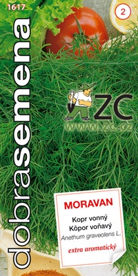 MORAVAN - aromatický, pozdě kvetoucí kopr. Listy jsou husté, tmavé, stříbřitě modrozelené. Má výraznou odolnost proti vybíhání do květu, což prodlužuje dobu sklizně. Výnosná a spolehlivá odrůda pro kuchyňskou úpravu, konzervaci i k sušení. Vegetační doba je 70 - 80 dnů.