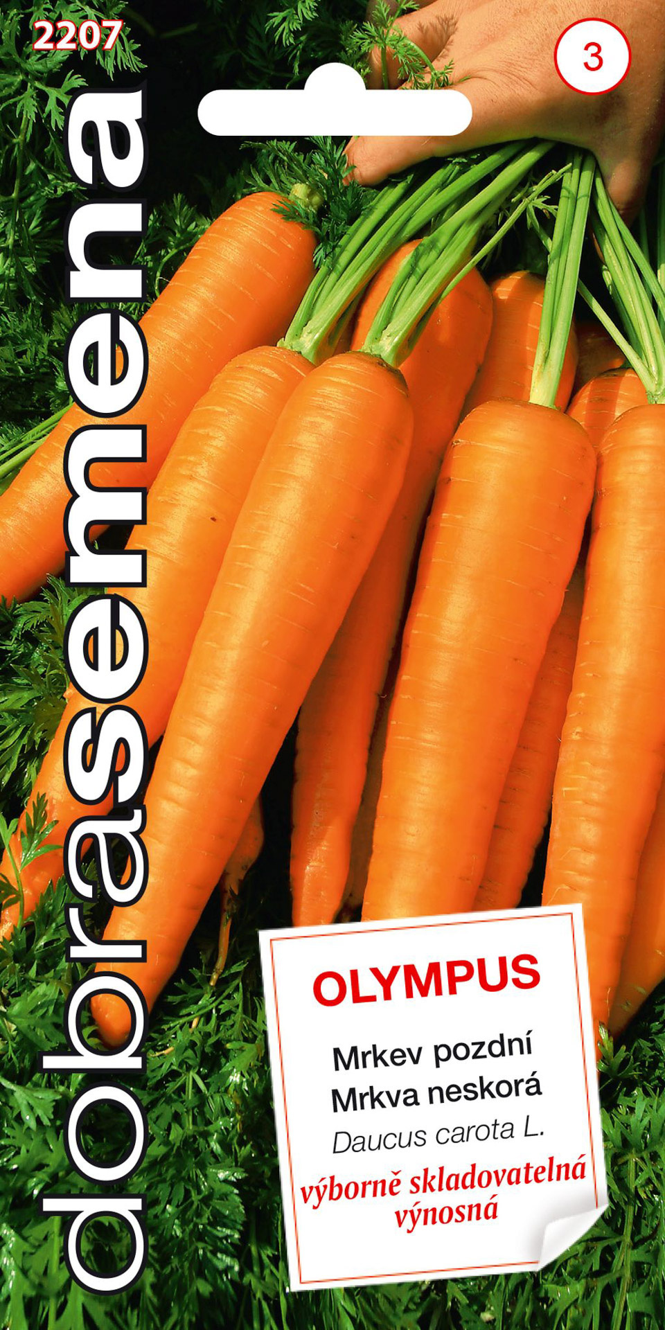 OLYMPUS - pozdní, výborně skladovatelná mrkev typu ´flakee´ s vysokým výnosem. Kořeny jsou 23 - 25 cm dlouhé, mírně kónické, jednolitě vybarvené.  Vyžaduje lehčí, dostatečně hlubokou a dobře zpracovanou půdu. Doporučujeme i k pěstování na hrůbcích.