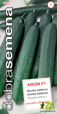 AIKON F1 - raná hybridní polní salátovka typu „American slicer“ vhodná pro pěstování na poli a ve fóliovnících. Rostlina je středně vzrůstná s převážně samičím kvetením. Plody jsou štíhlé, dlouze válcovité, dorůstající délky 25 - 28 cm. Slupka je tmavě zelená, bez žíhání, řídce ostnitá. Plod je odolný k deformacím a má dobrou skladovatelnost.