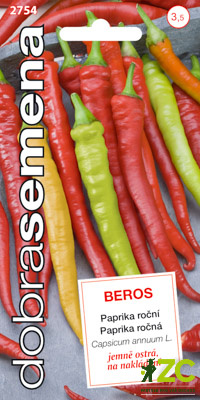 Beros - osvědčená a oblíbená odrůda na nakládání celých plodů s optimální pikantností. Velmi raný pálivý beraní roh pro studené rychlení i pro polní pěstování. Poskytuje výborný výnos a spolehlivou sklizeň i v horších klimatických podmínkách.