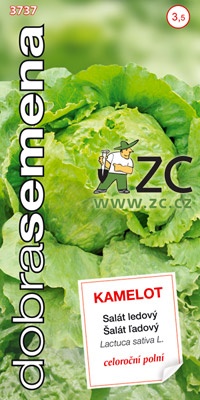 KAMELOT - výborný ledový salát pro celoroční polní pěstování. Hlávka je středně velká, kruhovitá, žlutavě zelená, bez anthokyanu. Vnitřní struktura hlávky je jemná a křupavá, chuť výtečná. Odrůda je odolná proti vybíhání do květu, vegetační doba je 80 ¦ 90 dní.