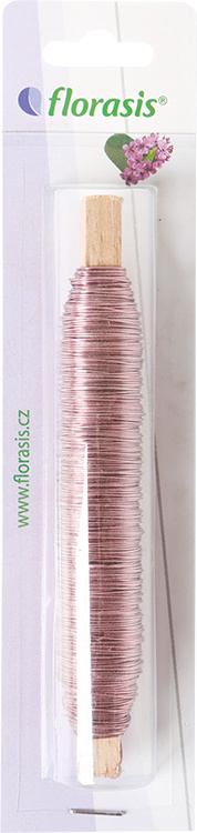 Měděný lakovaný drát na aranžování květin a výrobu věnců na dřevěném kolíku, váha 100 g.
