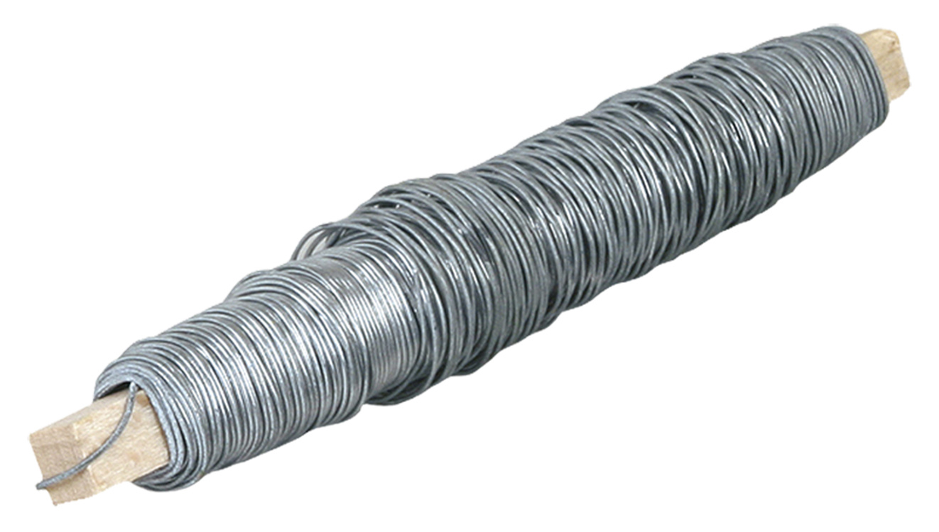 Drát na aranžování květin a výrobu věnců, pozinkovaný stříbrný na dřevěném kolíku, váha 100 g.