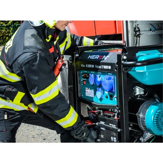 Elektrocentrála je určena k používání ve stavebnictví a při montážních pracích, ale také jako záložní zdroj elektrické energie pro mobilní servisní střediska a rekreační účely. Stroj je vybaven jednotkou AVR, která vyrovnává výstupní napětí. Proto je možné použít je k napájení jemných elektronických přístrojů, za předpokladu dodržení správného postupu používání. Sklopitelné madlo a pevná gumová kola, která jsou součástí dodávky, umožňují snadný převoz elektrocentrály na místo potřeby podobným způsobem jako cestovní zavazadlo s madlem a kolečky. Centrála je vybavena třemi 16A a jednou 32A zásuvkou s 230V, které umožňují připojit jak běžné spotřebiče, tak spotřebiče s vysokým odběrem (až 7,5kW) jako jsou např. svařovací invertory, stolní pily, velké kompresory... Dále je vybavena 12V/8,3A zásuvkou se stejnosměrným proudem a součástí příslušenství jsou rovněž nabíjecí kabely, díky nimž lze elektrocentrálou dobíjet 12V autobaterie. Díky elektrickému startu nastartujete a vypnete centrálu stiskem tlačítka jedním prstem. Tento start je zajišťován AGM bezúdržbovou baterií s dlouhou životností dobíjenou chodem elektrocentrály. Pro příjemnější práci blízko elektrocentrály jsme ji vybavili novým typem výfuku s nižší hlučností a příjemnějším zvukem.