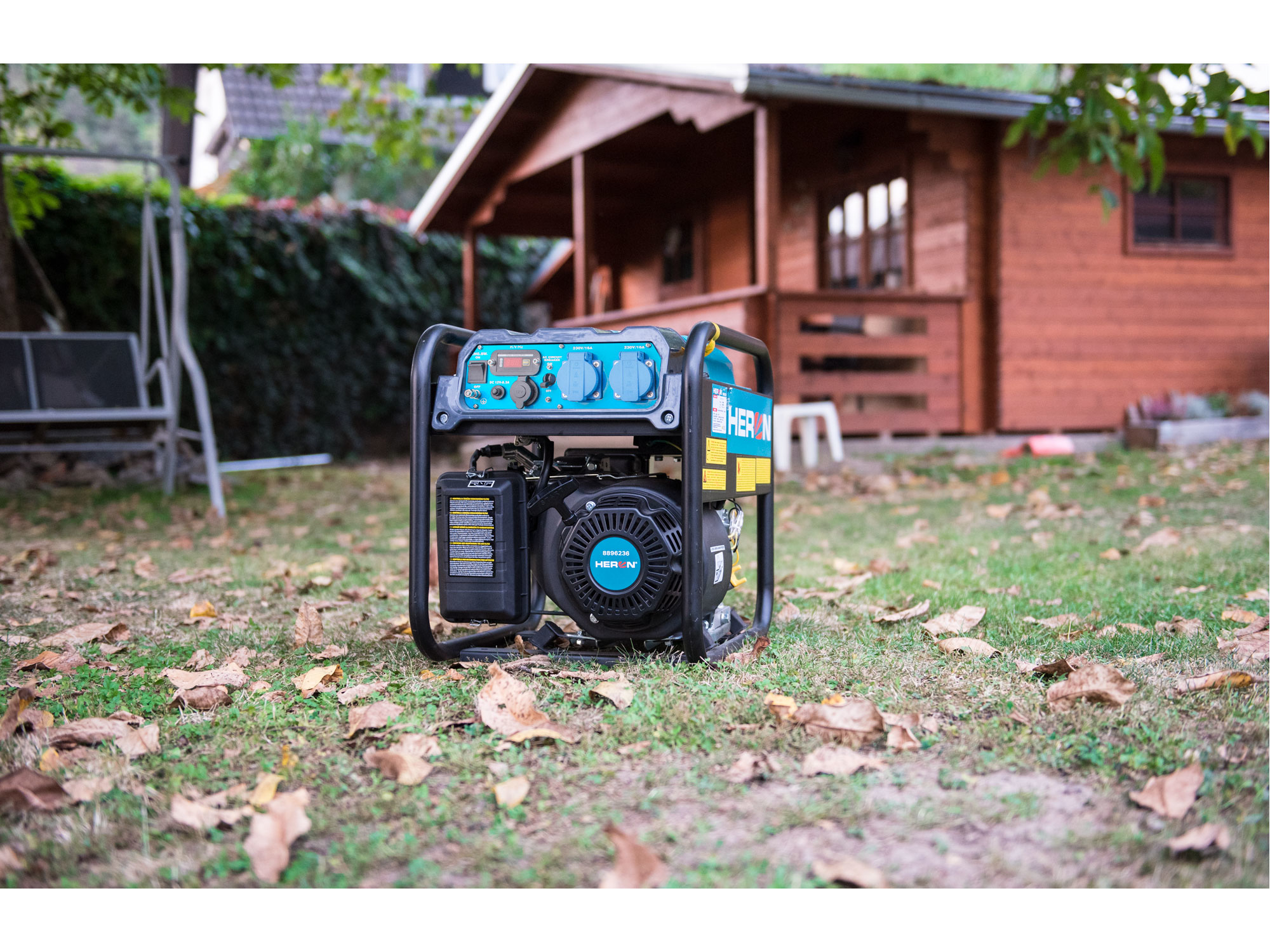Elektrocentrála HERON je moderní zdroj elektrické energie určený všem, kteří potřebují spolehlivý, úsporný a přenosný výkon. Díky digitální invertorové technologii poskytuje čisté a stabilní napětí vhodné i pro citlivou elektroniku, přičemž zachovává nízkou hmotnost a kompaktní rozměry. Oproti běžným modelům s AVR regulací nabízí vyšší účinnost a efektivnější provoz, což z ní činí ideální zařízení pro stavebníky, servisní techniky i rekreační využití. Srdcem centrály je čtyřtaktní motor o výkonu 7,5HP, který umožňuje dlouhodobý elektrický výkon 4,0kW a krátkodobě až 4,3kW. Tento výkon postačí pro napájení většiny nářadí, čerpadel či topných spotřebičů. Dvojice zásuvek 230V/16A umožňuje současné použití více zařízení, zatímco 12V výstup s autozásuvkou poskytuje napájení drobných spotřebičů s odběrem do 8,3A – například USB nabíječek, chladicích boxů, vysavačů apod. Přiložené kabely zároveň umožňují nouzové nabíjení autobaterií. Digitální panel zobrazuje celkový i aktuální čas provozu, výstupní napětí a frekvenci. Velkou výhodou tohoto modelu je kompaktnost: invertorová technologie umožnila snížit hmotnost oproti běžným AVR centrálám téměř o 40% na 28kg a zároveň zmenšila objem o třetinu. Díky tomu se zařízení snadno přenáší a nevyžaduje velký prostor pro skladování. Robustní rám zajišťuje stabilitu a bezpečnou manipulaci i v náročném terénu. Elektronická regulace výkonu automaticky přizpůsobuje otáčky motoru aktuálnímu zatížení, čímž snižuje spotřebu. HERON tak představuje ideální volbu pro ty, kdo hledají tišší, lehčí a efektivnější elektrocentrálu s výkonem téměř 4kW v moderním přenosném provedení. Nabízí kombinaci vysokého výkonu, mobility a spolehlivosti při zachování příznivé ceny.