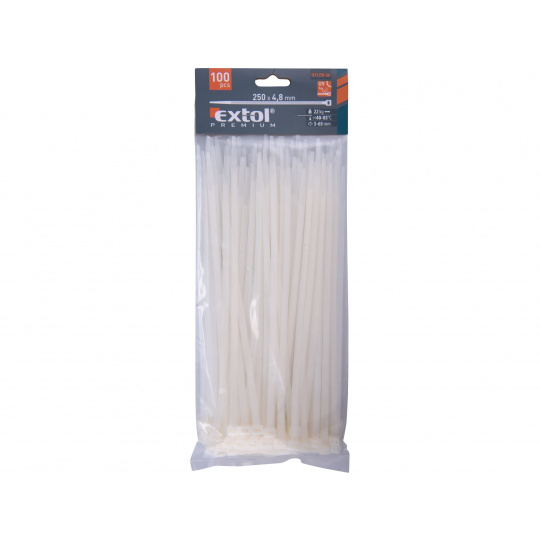 pásky stahovací na kabely bílé, 250x4,8mm, 100ks, nylon PA66