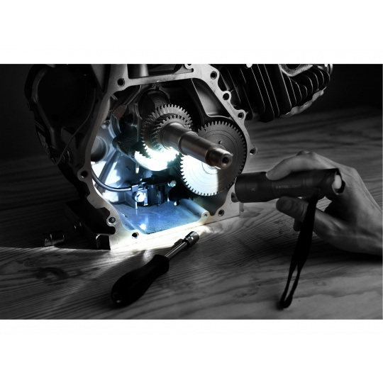 dosvit: 100m, 2 módy světla: 100% a 30%, IP54, baterie 3xAAA 1,5V (nejsou součástí), hmotnost bez baterií 108g