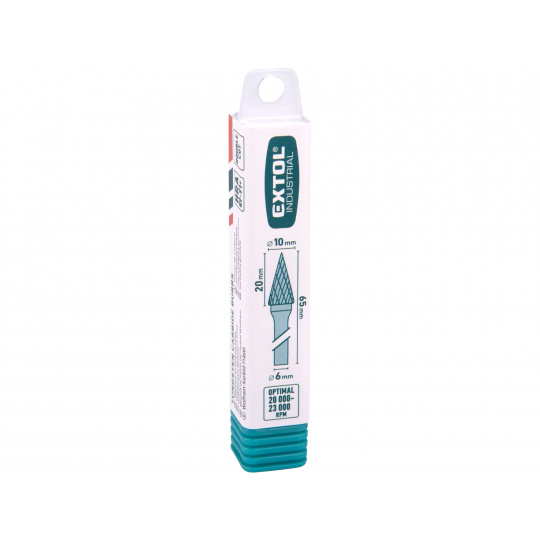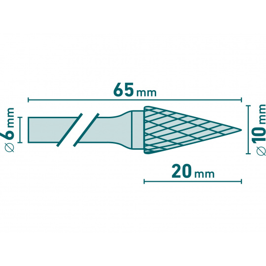 fréza karbidová, konická-jehlan, pr.10x20mm/stopka 6mm,sek střední (double-cut)